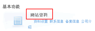 2、進(jìn)入管理主頁(yè)后,在基本功能那里點(diǎn)擊“網(wǎng)站資料”