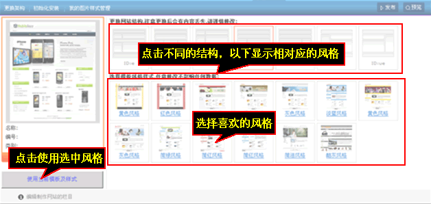 點擊每種網站結構對下都會顯示相應的