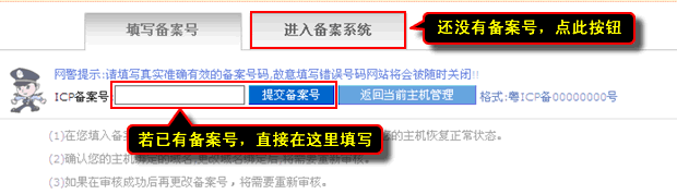還沒有備案號,則“進入備案系統”